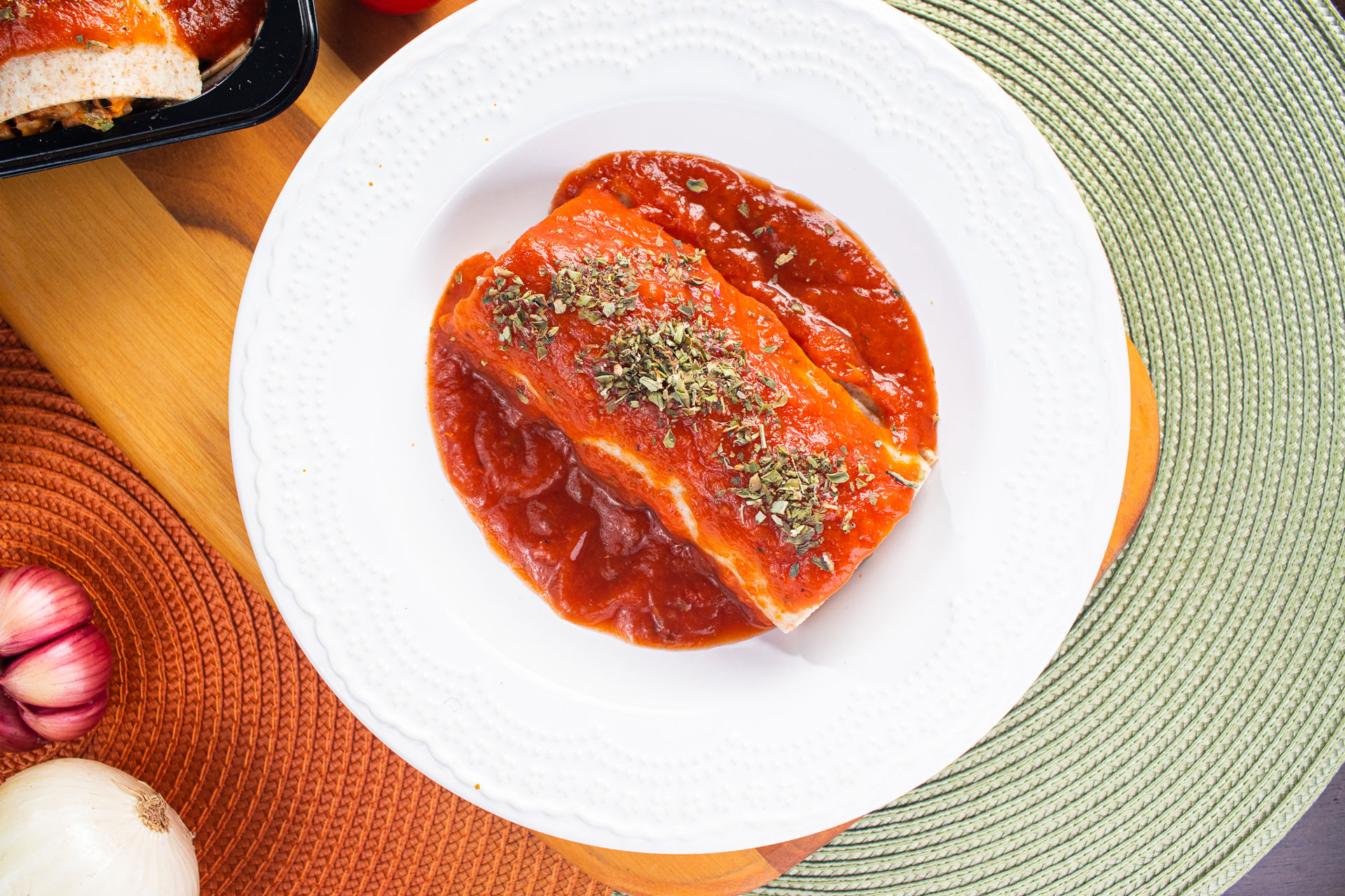 Delicioso canelone artesanal recheado com carne moída de patinho, mussarela cremosa e coberto com molho de tomate natural, temperado com temperos naturais. Uma refeição prática, saborosa e nutritiva, ideal para quem busca qualidade e praticidade no dia a dia. Ultracongelado para manter frescor, textura e sabor por muito mais tempo. Porção de 200g, pronta para aquecer e servir.