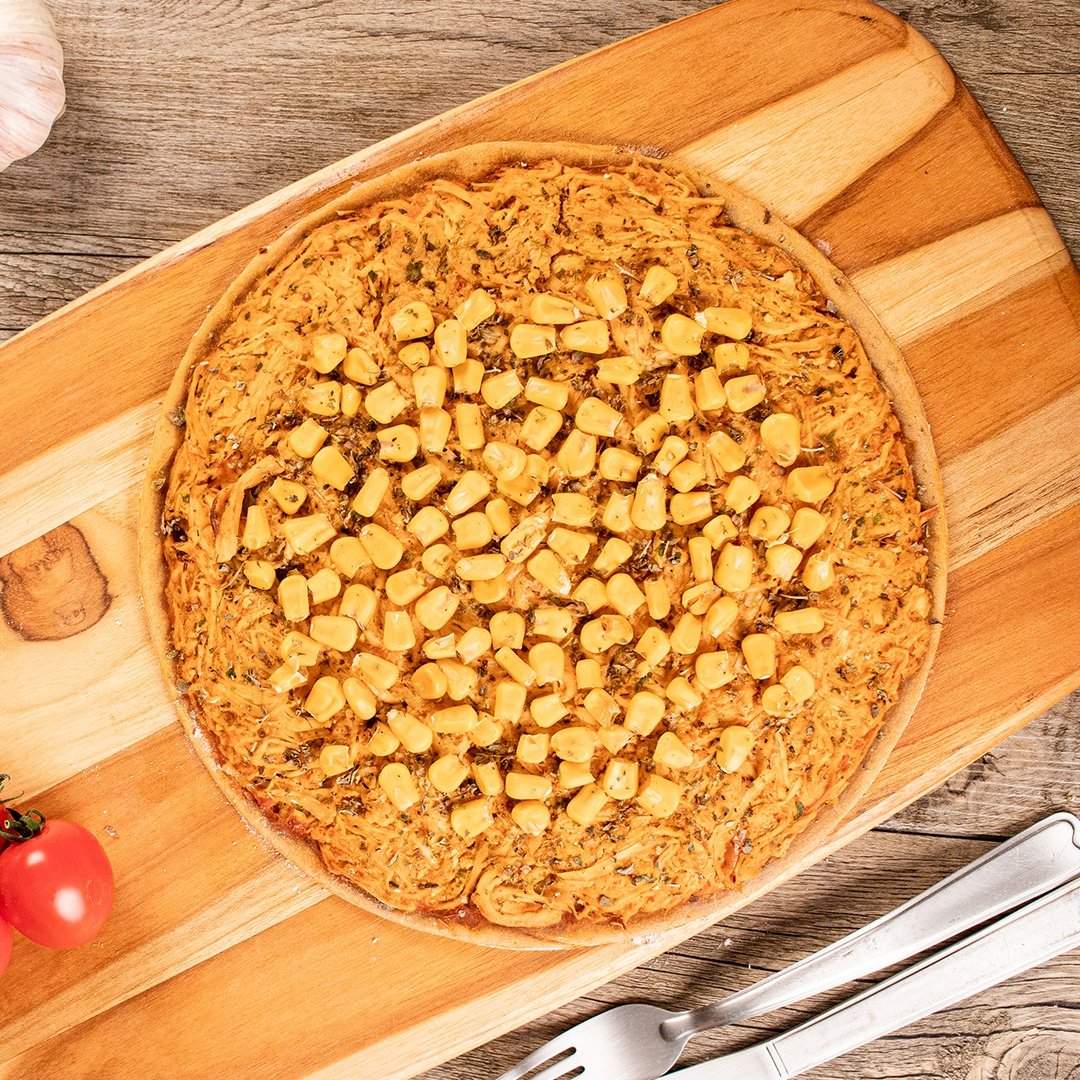 A pizza integral de frango desfiado com milho, com 300g, é uma combinação clássica e irresistível. Preparada com massa integral macia, leva frango desfiado bem temperado e grãos de milho doce que realçam o sabor, finalizada com queijo derretido. Uma refeição equilibrada, nutritiva e deliciosa para qualquer ocasião.