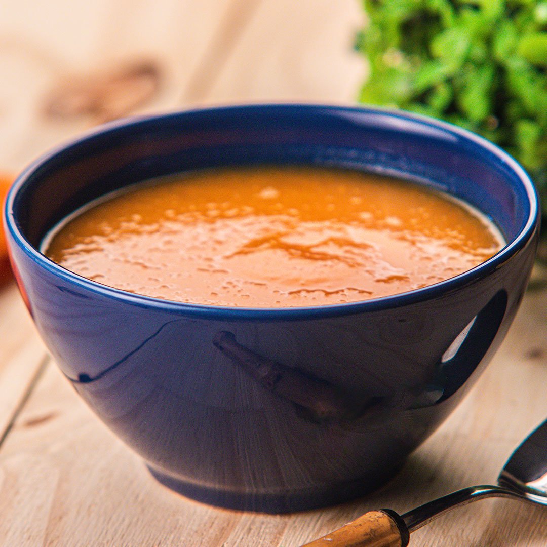 A sopa de cenoura com gengibre, com 300ml, é uma opção prática, leve e nutritiva. Preparada com cenouras frescas e um toque de gengibre, proporciona sabor equilibrado, aroma agradável e benefícios digestivos. Ideal como refeição leve ou entrada, mantém frescor e qualidade graças ao ultracongelamento, oferecendo praticidade sem abrir mão do sabor.